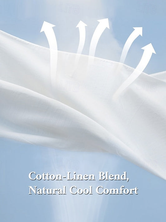 Women's Shirt Blouse Faux Cotton Linen Buttons Solid Color