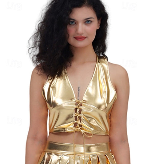 Mardi Gras 2026 Retro Vintage 1980s Crop Top Disco Halter Shiny