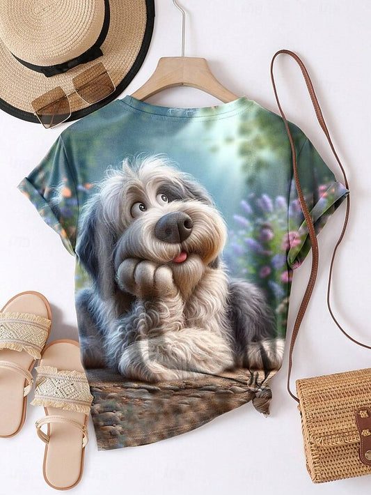 Women's T Shirt Print Dog Casual Short Sleeve Round Neck
