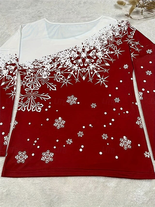 Christmas Women's T Shirt Print 3/4 Sleeve Scoop Neck