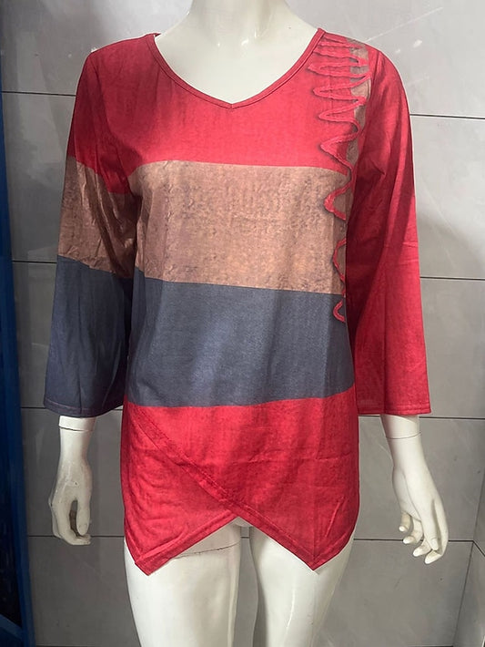 Women's T Shirt Tee Top Patchwork Print Color Block Vintage