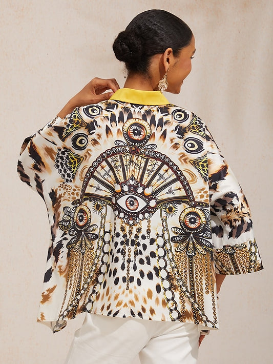 Vintage Leopard Jewelry Silky Satin Dolman Sleeve Shirt