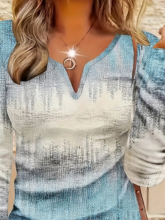 Women's T shirt Long Sleeve Henley T Shirt Blouse Floral