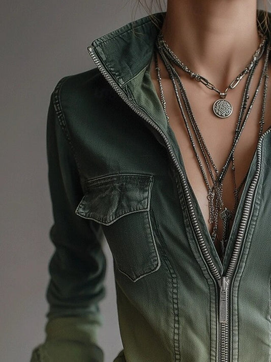 Women's Shirt Casual Shirt Blouse Zipper Pocket Ombre