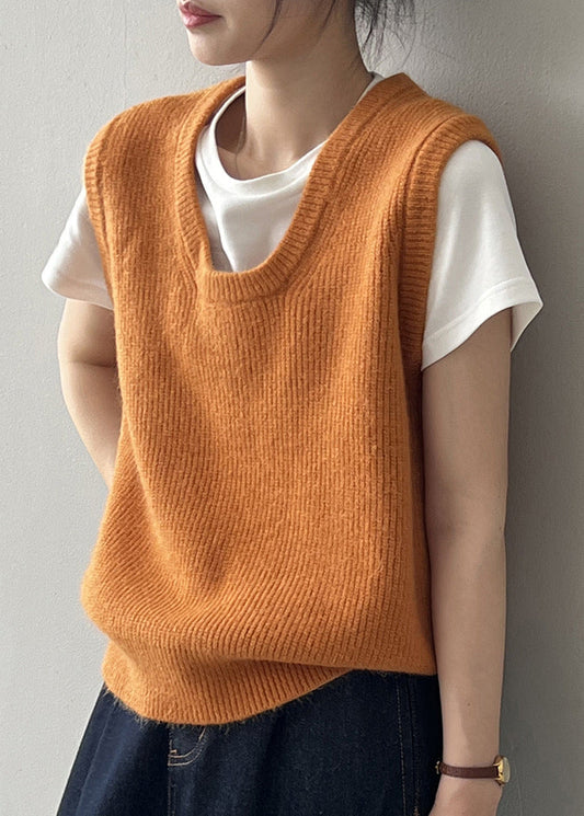 2024 Simple Versatile Green U Neck Knitted Vest Autumn WD016
