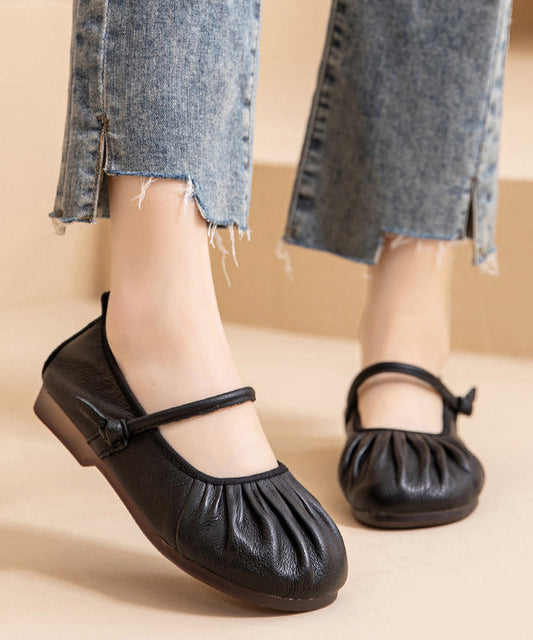Wrinkled Splicing Cowhide Leather Comfy Women Shoes Flat Brown