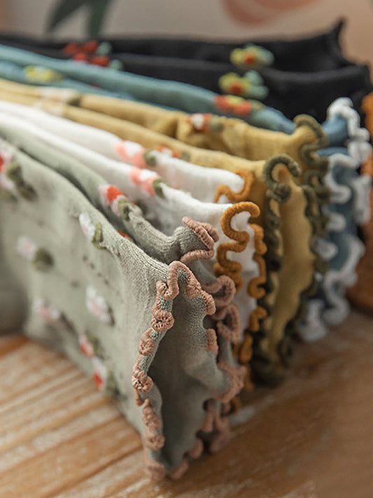 5 Pairs Women Artsy Foral Embroidery Colorblock Cotton Socks AV1043