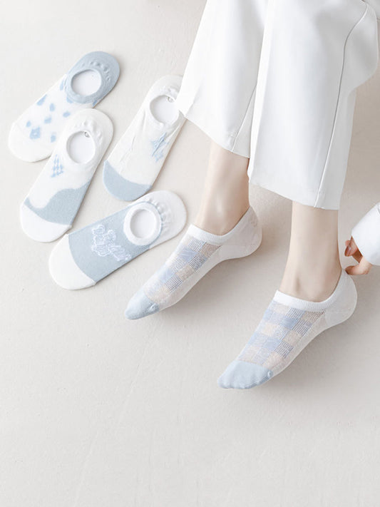 5 Pairs Women Summer Jacquard Thin Socks OO1033