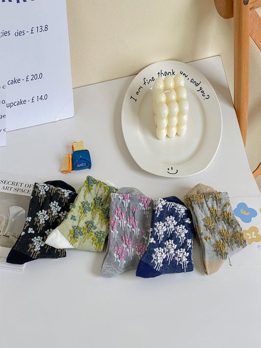 5 Pairs Women Vintage Floral Colorblock Cotton Socks AH1025