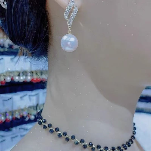 Earring Rhinestone Drop Leaf Silver Sterling 925