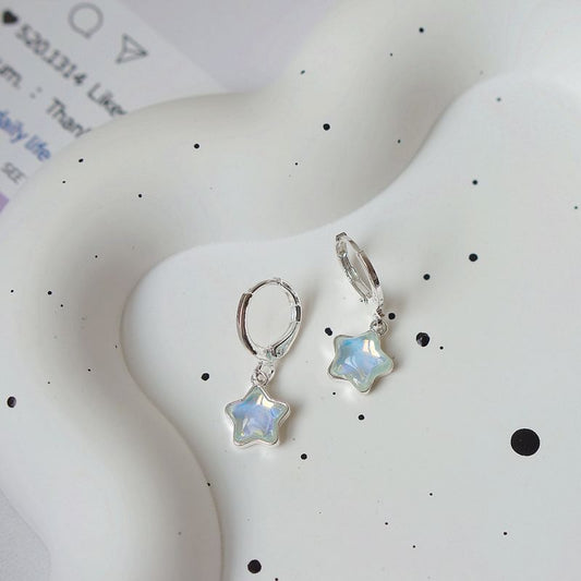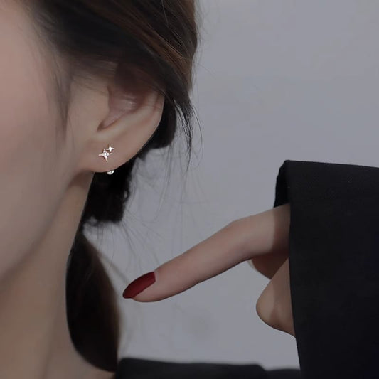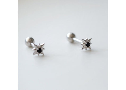 Earring Silver Barbell Star Rhinestone Sterling 925