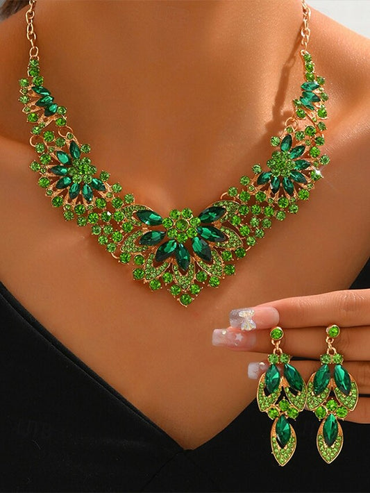 Elegant Green Statement Set – Jewelry Crystal Necklace