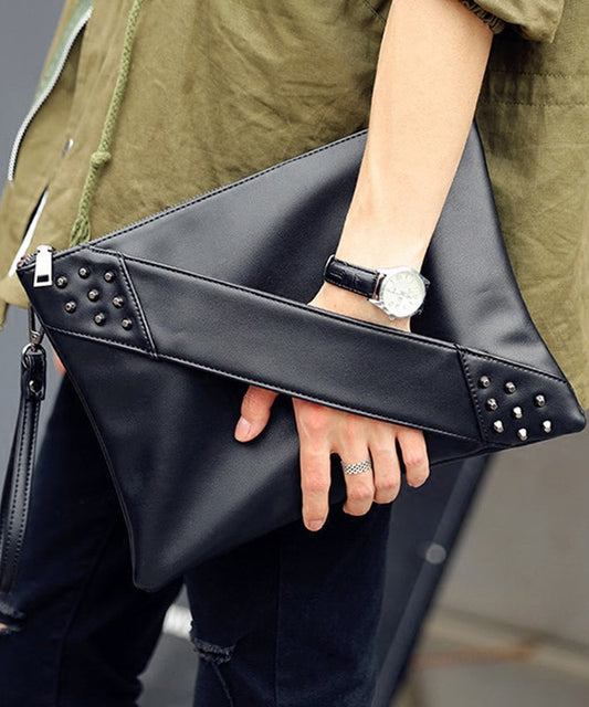 Elegant Red Nail Bead Zippered Faux Leather Satchel Handbag UU1083