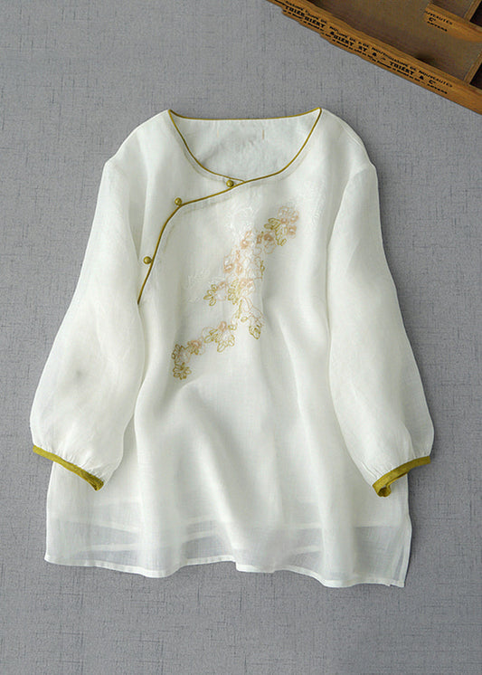 Fashion Apricot Embroidered Patchwork Button Shirt Summer AP016
