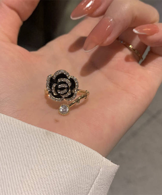 Fashion Black Copper Overgild Zircon Camellia Rings PO013
