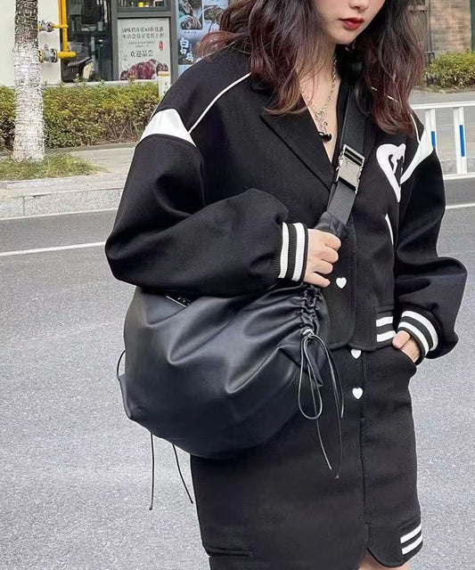 Fashion Black Faux Leather Drawstring Messenger Bag MM062