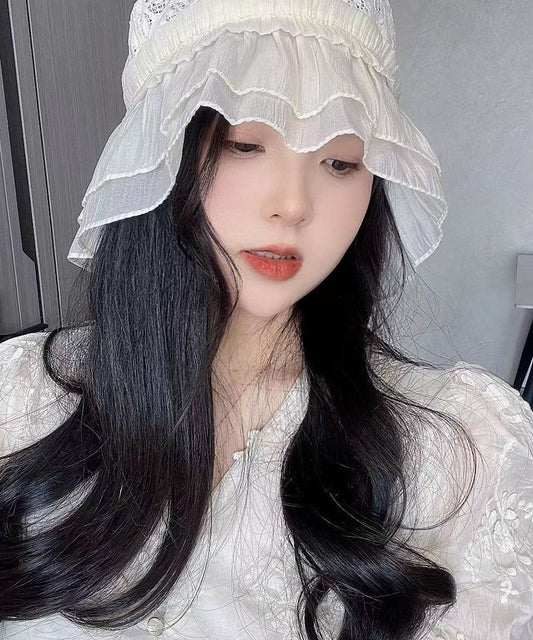 Fashion Black Hollow Out Lace Ruffles Bucket Hat YU1016