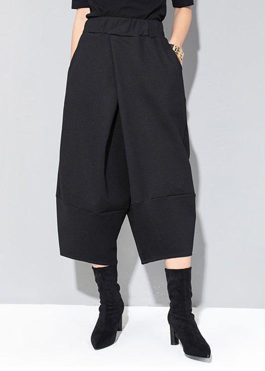 Fashion Black Pockets High Waist Crop Pants Spring RZ004