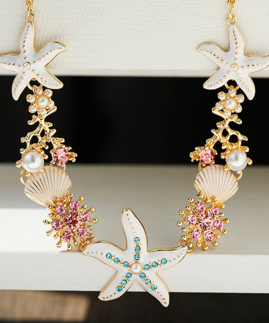 Fashion Blue Sterling Silver Overgild Enamel Zircon Shell Pearl Pendant Necklace QU026