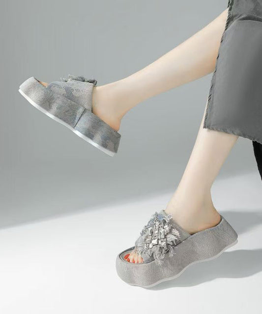 Fashion Boutique Tassel Zircon Platform Slide Sandals AG1002