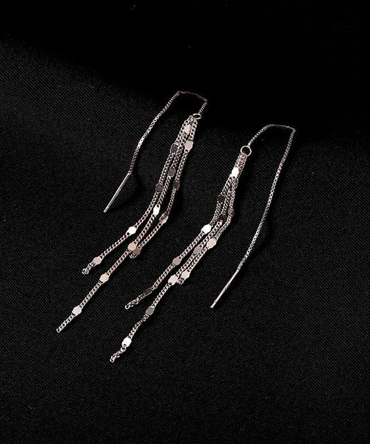Fashion Silk Sterling Silver Sequins Tassel Drop Earrings PO003