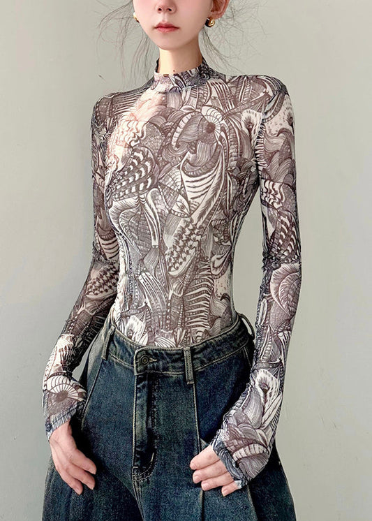 Fashion Slim Fit Print Tulle T Shirt Top Fall AL1061