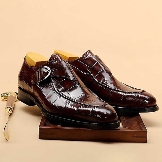 Faux Burgundy Men's Crocodile Leather Monk Pattern Strap