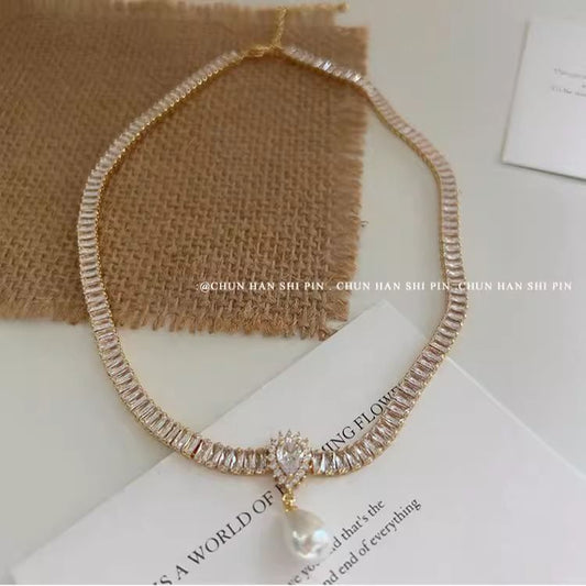 Faux Pearl Earring Flower Rhinestone / Clip-On Drop