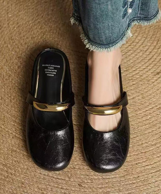 Faux Thong Sandals Chunky Chic Leather Black Splicing