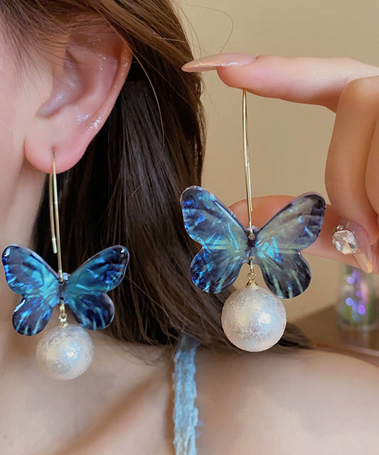 Fine Blue Acrylic Pearl Butterfly Drop Earrings PO076