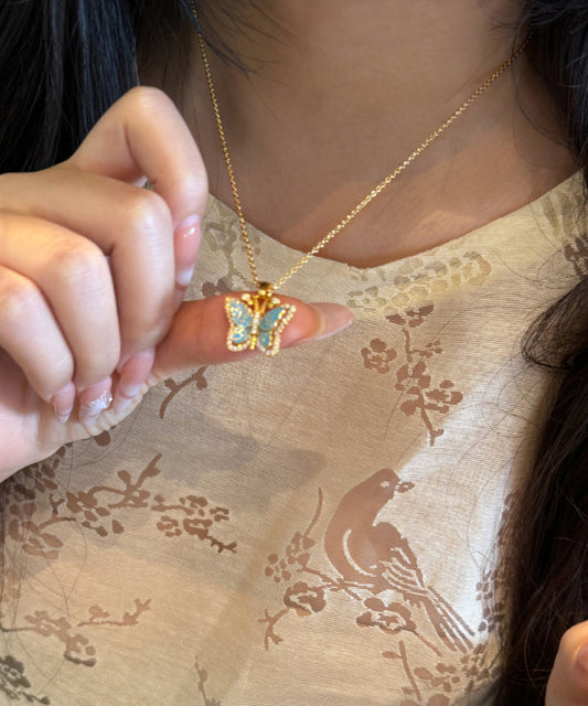 Fine Blue Ancient Dharma Gold Zircon Butterfly Pendant Necklace AC1076