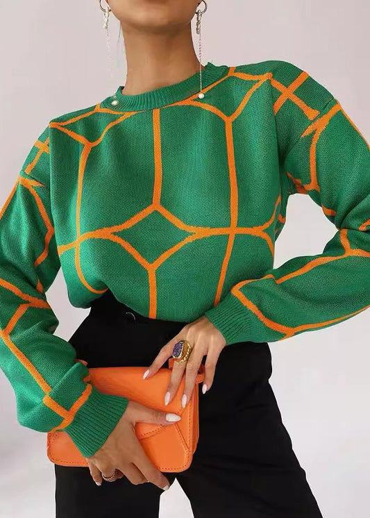 Fine Blue O Neck Thick Striped Knit Sweater Fall QY001