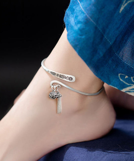 Fine Red Sterling Silver Lotus Seedpod Carve Tassel Anklets QD023