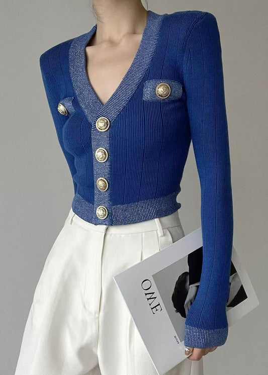 French Black V Neck Button Knit Coats Fall AE1007