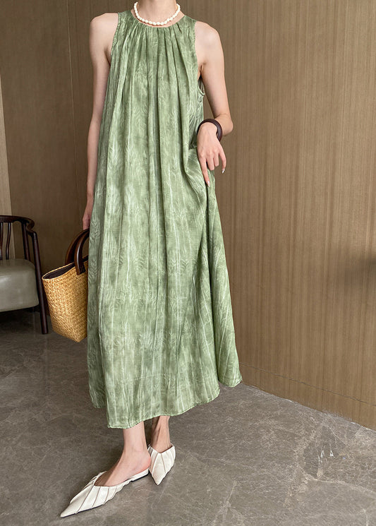 French Blue O Neck Wrinkled Cotton Holiday Dress Sleeveless WR001