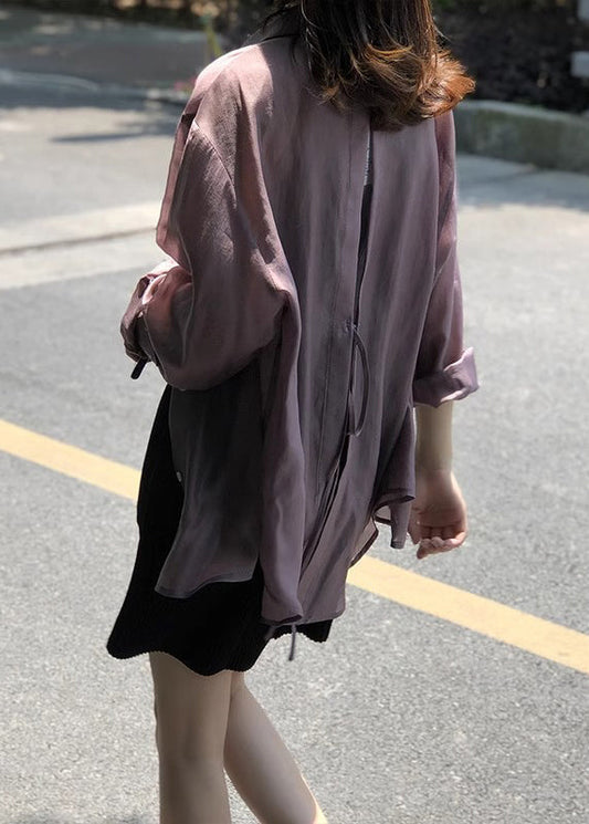 French Blue Peter Pan Collar Lace Up Silk Shirt Spring KK020