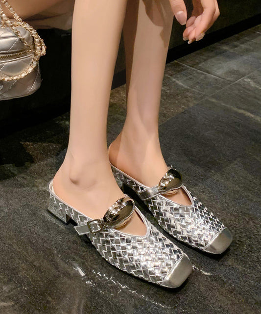 French Gold Splicing Chunky Slide Sandals Square Toe OM017