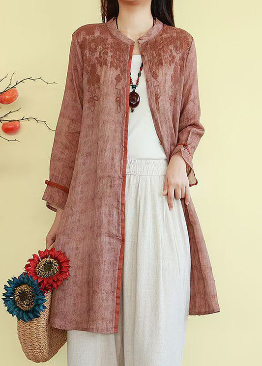 French Linen Blue Embroidered Fall Button Shirts
