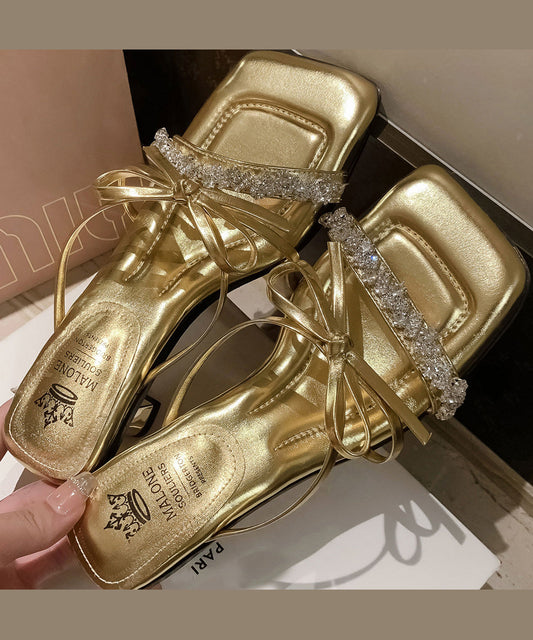 French Pink Bow Zircon High Heels Slide Sandals Peep Toe KJ072