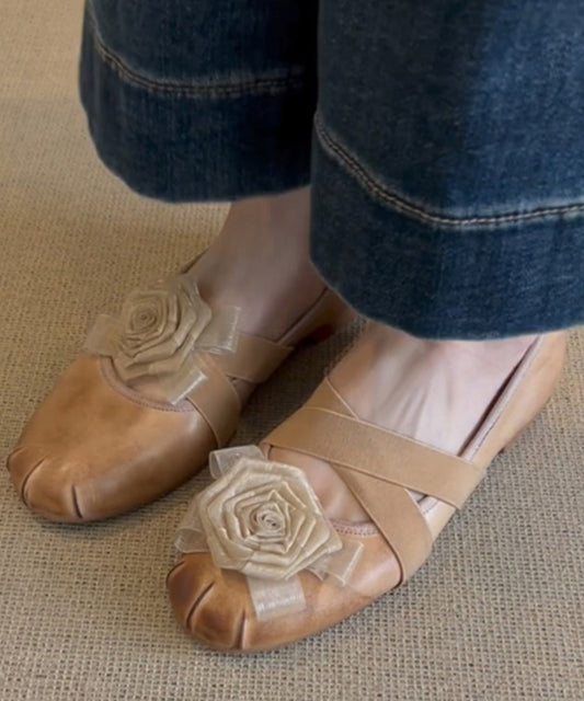 French Purple Flats Cowhide Leather Fine Splicing Floral YC033
