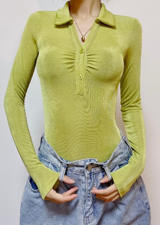 French Rose V Neck Button Ice Silk Knit Top Long Sleeve AS1062