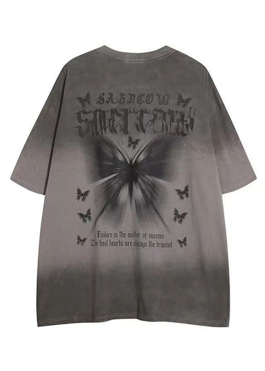 French White Gradient Color Print Cotton Mens Tshirt Summer LK049