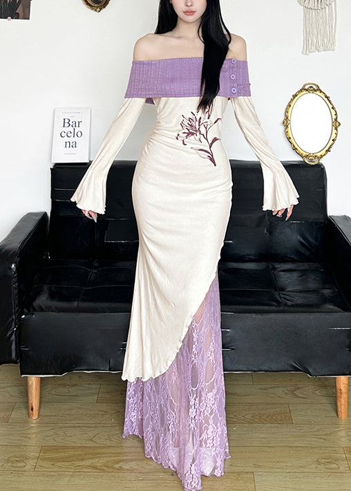 French White Cold Shoulder Patchwork Cotton Party Dress Spring YP034