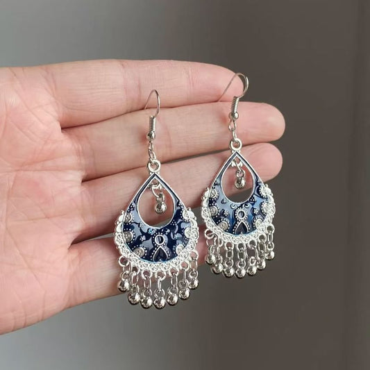 Fringed Earring Dangle Disc Alloy