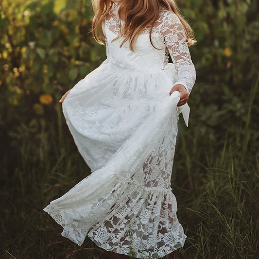 Girls' Girl Kids Party Color Solid Flower Long Dress
