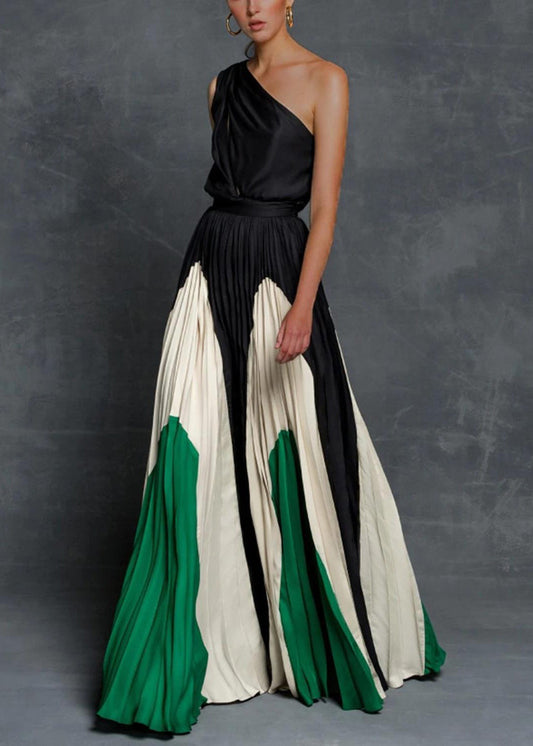 Grey Sleeveless Dress Ankle Patchwork Elegant Cotton Wrinkled