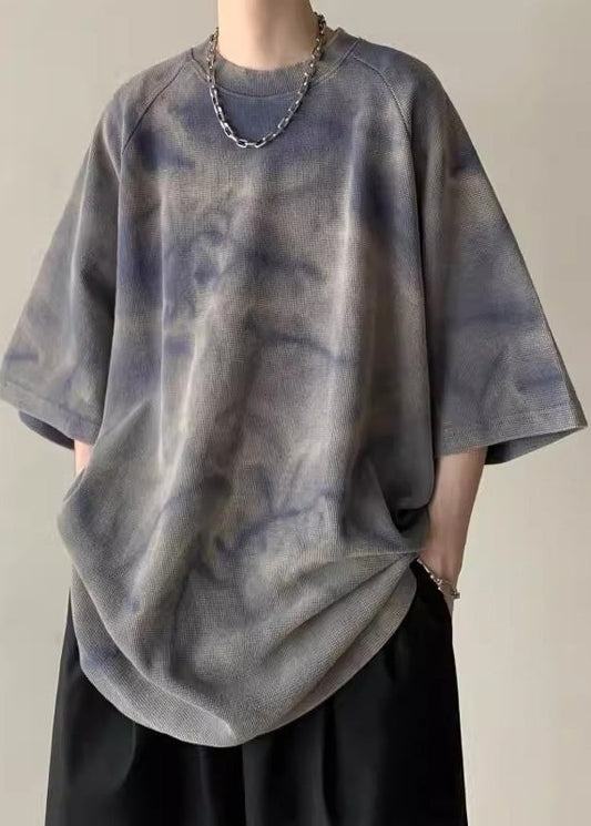 Half Dye Mens Tie O-Neck Army Green Vintage Shirt Cotton Sleeve T