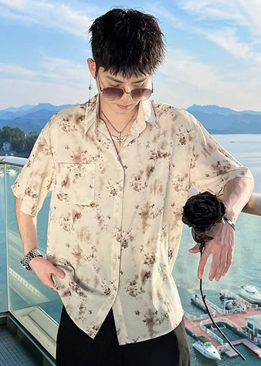 Hawaiian Vacation Pink Ice Silk Floral Shirt Men's Short Sleeved HG033