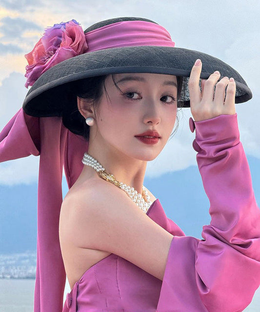 Hat Woven Straw Zircon Satin Purple Cloche Classy