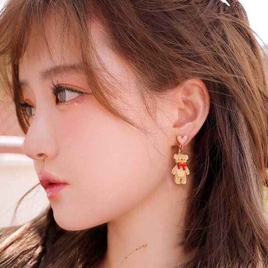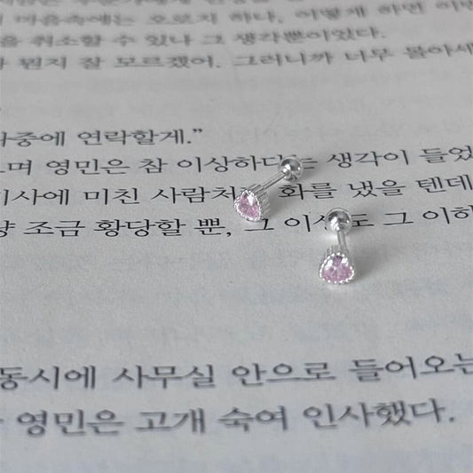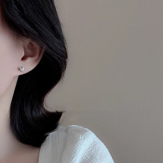 Heart Earring Rhinestone Asymmetrical Alloy Barbell